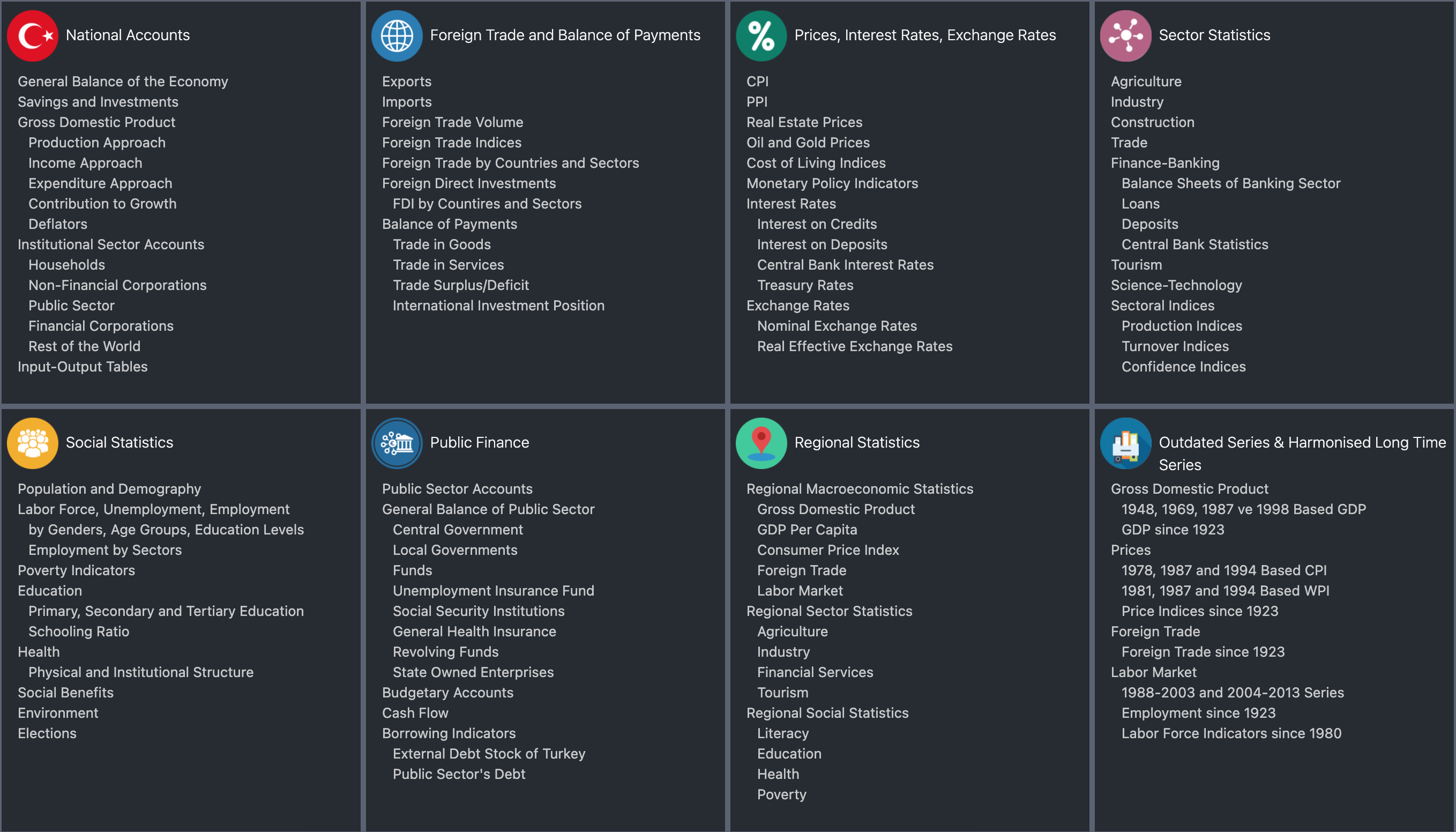 dataTurkey also combines non-time series data in separate PDF files and makes them available as time series